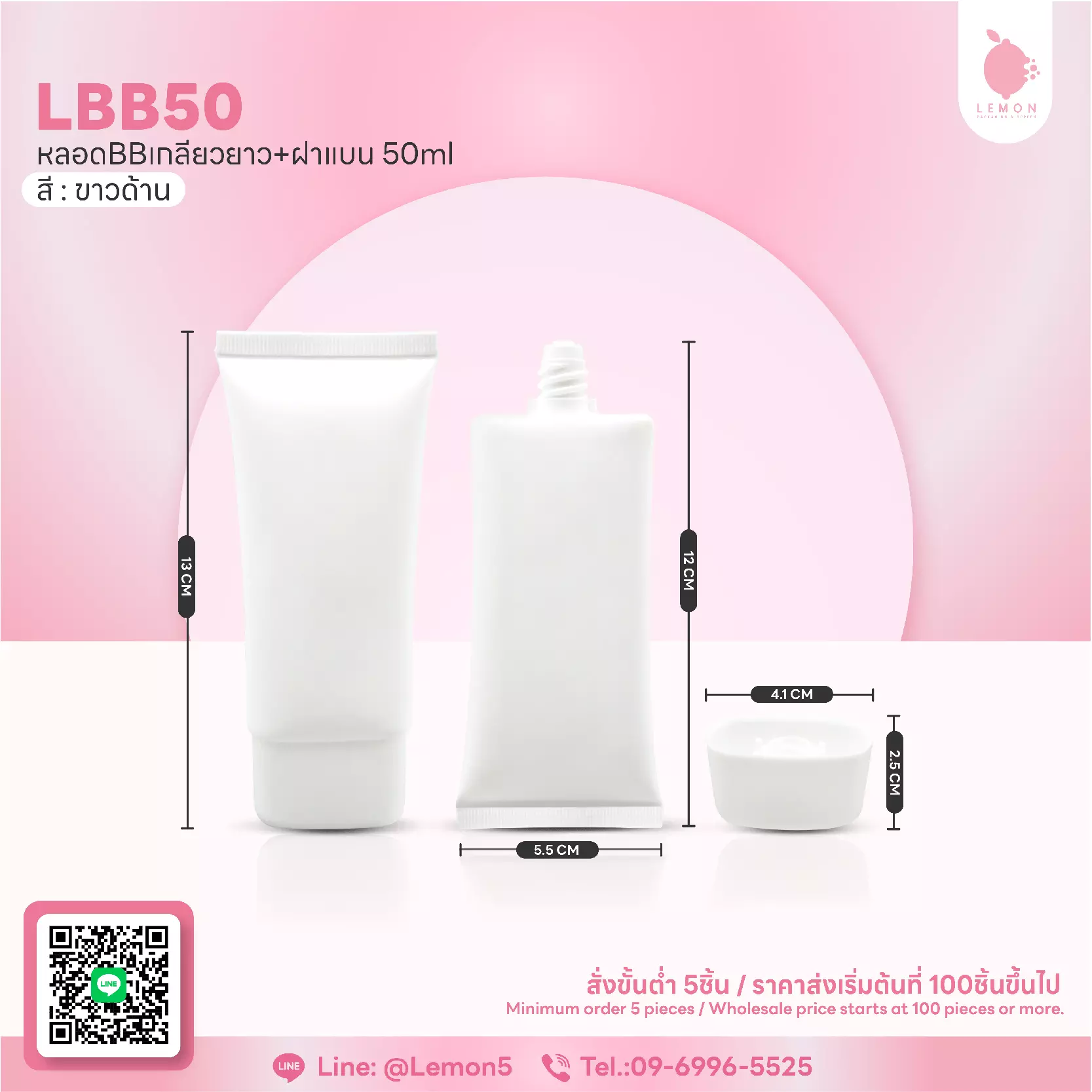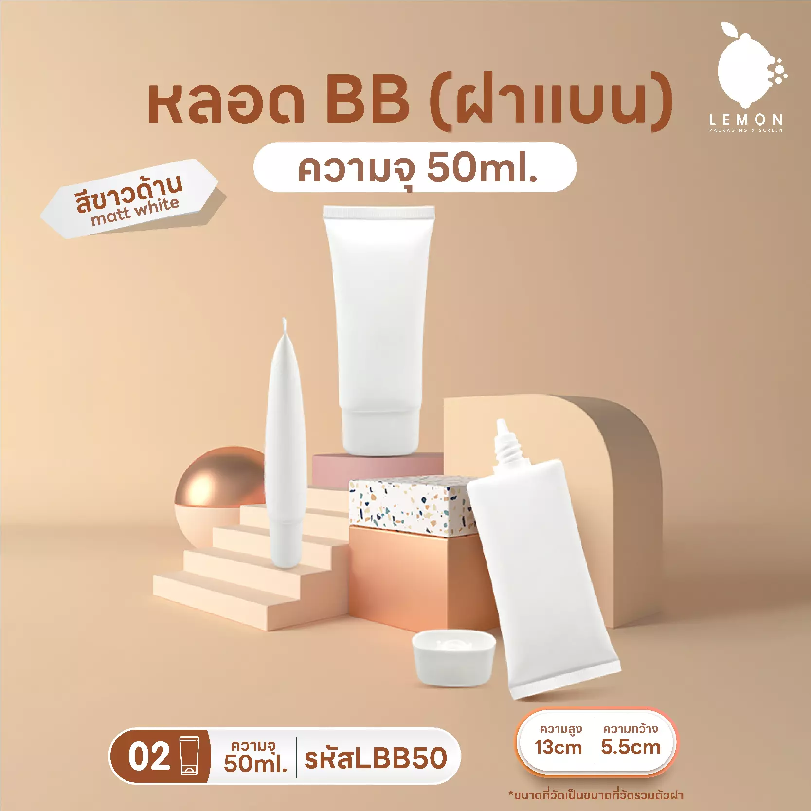 หลอดBBเกลียวยาว+ฝาแบน 50ml รหัสสินค้า LBB50